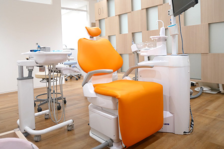 診療室は、明るく清潔に保つことを心がけ、とくに衛生面に気を配っています。ユニットのモニターでは説明用の動画やレントゲンはもちろんのこと、小さな口腔内カメラで実際にお口の中を撮影した画像もご覧いただけます。
