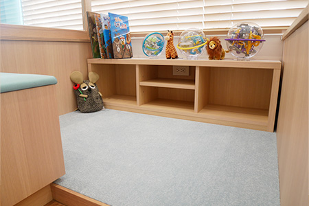 お子さんが歯科医院に来ることが楽しみになるよう、おもちゃで遊んだり、絵本を読んだりできるキッズスペースを設けました。